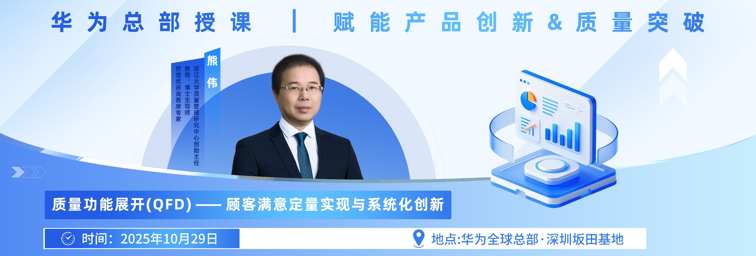 2025年10月29日,哲捷优咨询首席专家、被誉为“中国QFD之父”的熊伟教授受邀在深圳坂田基地的华为全球总部为华为技术有限公司开展QFD专题培训。熊伟教授曾为华为终端BG(包括手机、个人电脑和平板电脑、可穿戴设备、移动宽带终端、家庭终端和终端云等产品)培训QFD课程、也曾担任评审组长评审和推荐华为公司荣获第二届中国质量奖。
