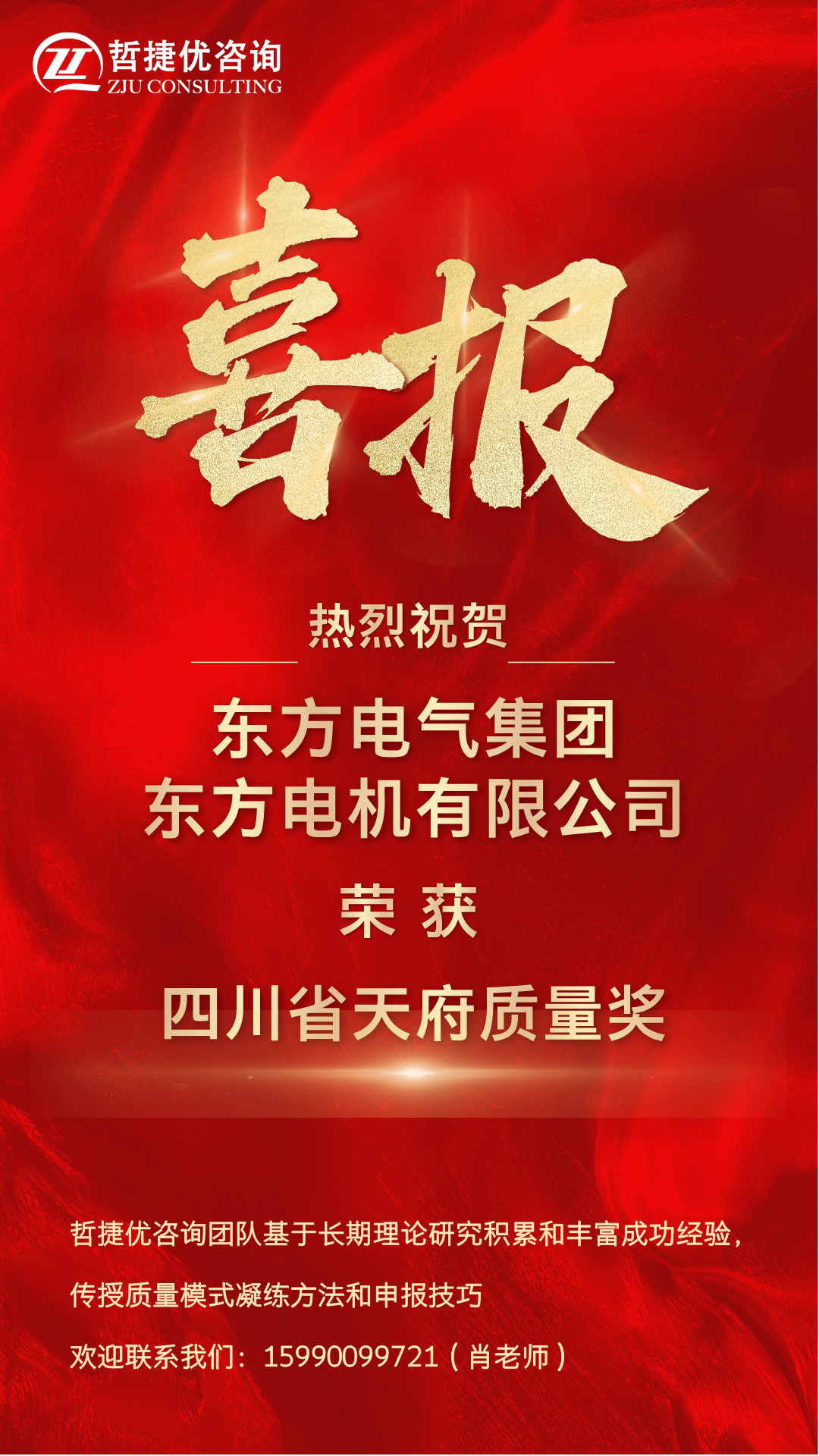【质量奖创奖】哲捷优咨询助力东方电气集团东方电机有限公司荣获四川省天府质量奖